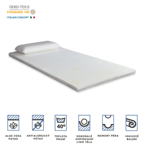 Materiál plněný polyuretanem ve dvojitém potahu chrání matrace před ušpiněním, jeho používáním se výrazně prodlužuje životnost výrobku. Ve všech čtyřech rozích chrániče se nachází pryžový pant, pomocí kterého se snadno a bezpečně upevňuje. Díky snadnému čištění se doporučuje především pro rodiny s malými dětmi a při ošetřování pacientů.