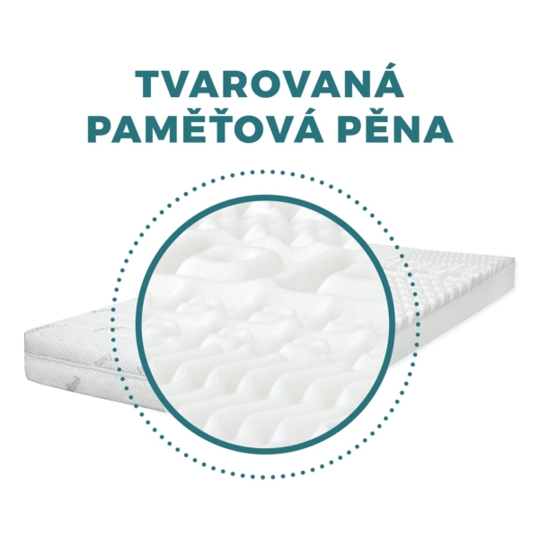 - Sedmizónová tvarovaná paměťová pěna o tloušťce 4 cm (hustota 50 kg/m3, tlak 1,8 kPa).